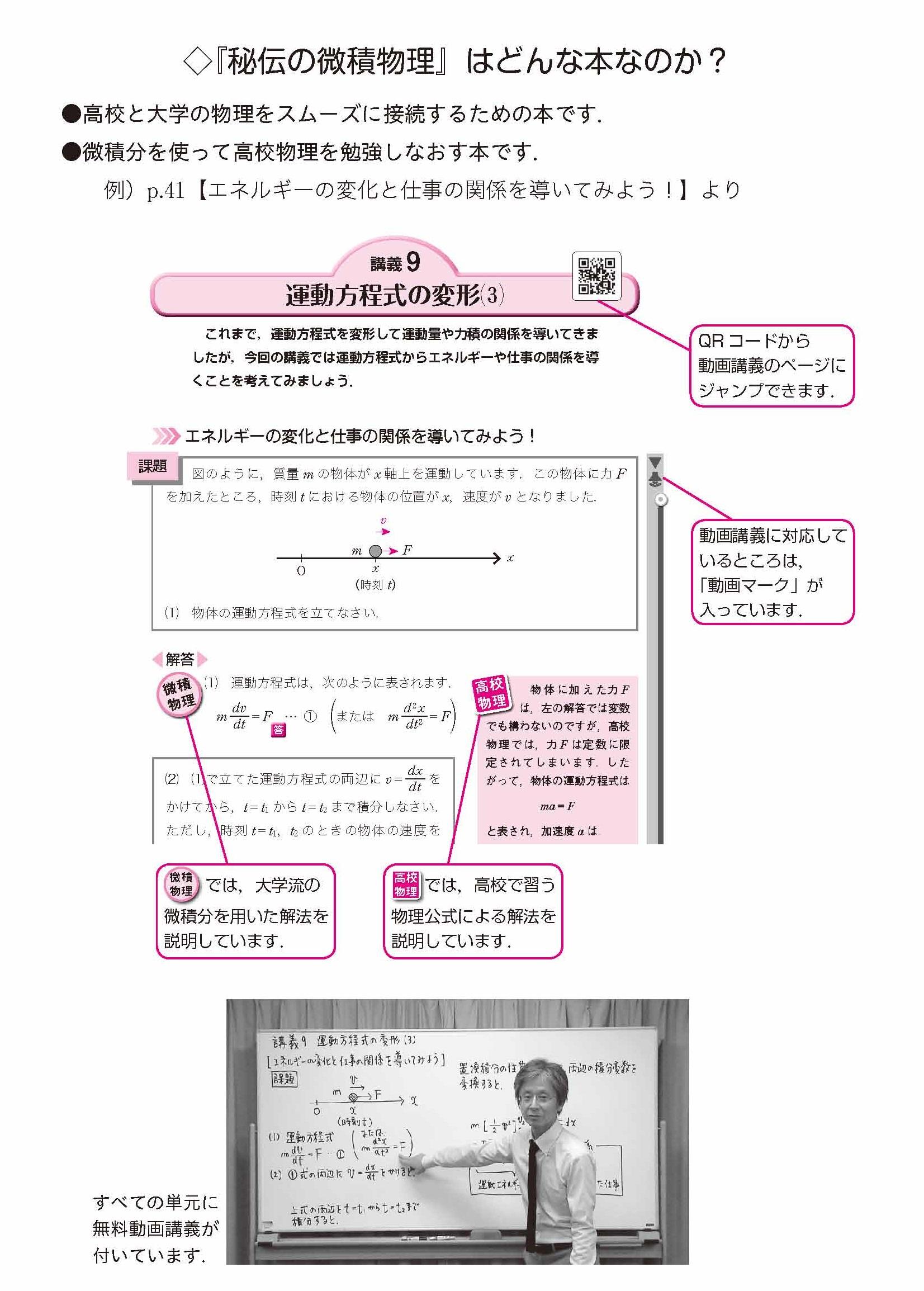 ●「高校までの物理」と「微積を使った物理」のちがいがよくわかる! …… 「高校物理」と「微積物理」を比べながら丁寧に解説します。